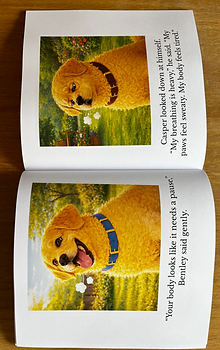 Casper and Bentley are two friendly golden retrievers who guide children through emotional experiences in a warm, non-judgmental way.